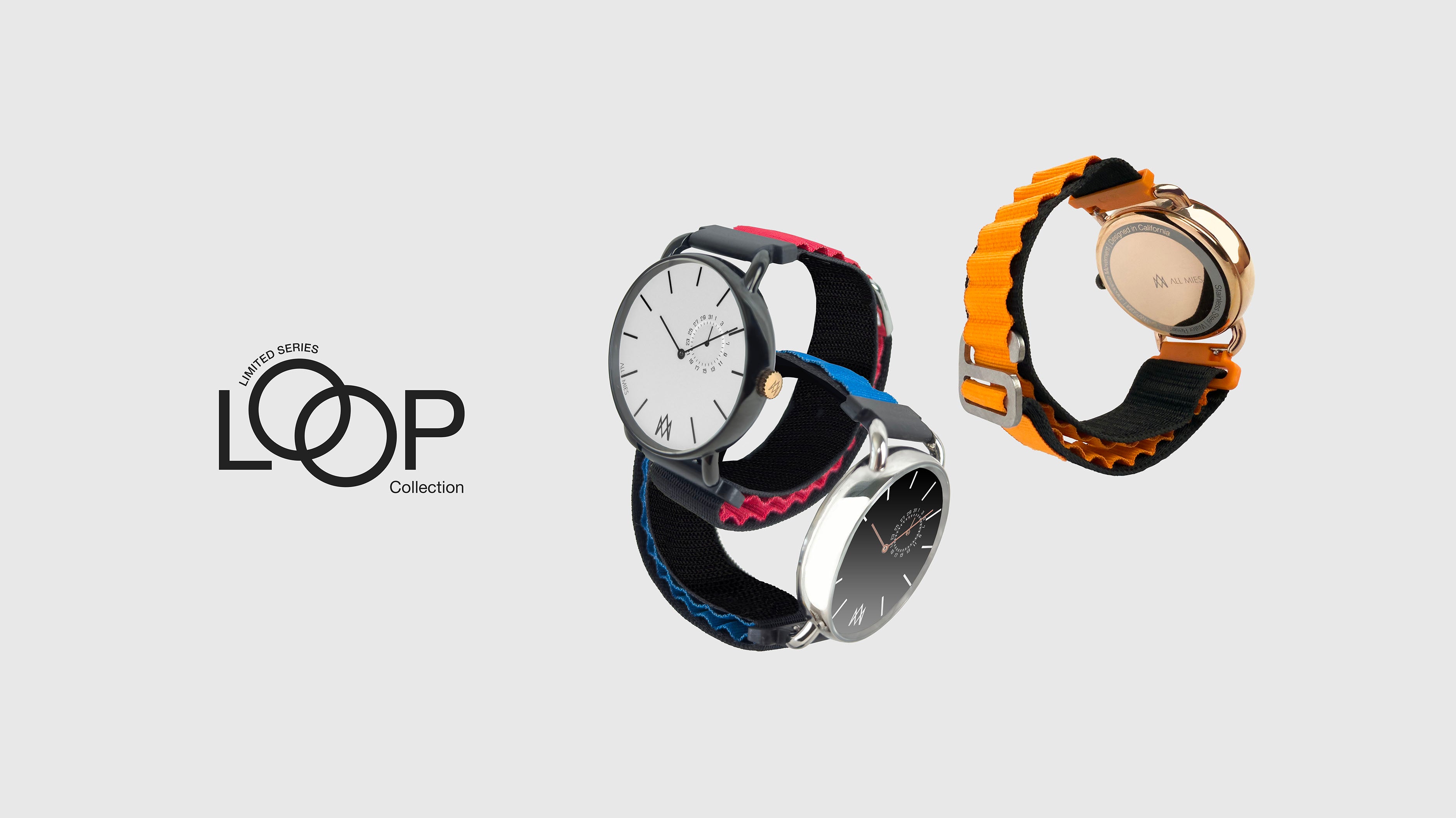 Bound by Loops. Defined by Style. The LOOP Collection introduces a bold new chapter for All Mies, where function and design are seamlessly fused. Each strap in this limited series features a distinctive nylon loop system that not only catches the eye but also serves as the clasp mechanism itself. Available in striking red, electric blue, and vivid orange, each paired with a sleek black base, these loops transform everyday utility into an expressive design statement. All of this is combined into the classic yet unforgettable Bauhaus 41MM model, bringing fresh energy to a timeless silhouette.